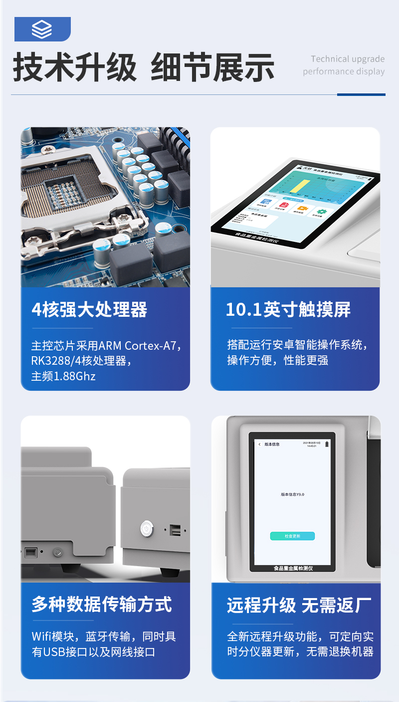 山東天研儀器有限公司生產(chǎn)的重金屬檢測(cè)儀為集成化食品安全快速檢測(cè)分析設(shè)備,采用臺(tái)式一體化設(shè)計(jì),重金屬檢測(cè)儀可廣泛應(yīng)用于大米、糧谷、果品、蔬菜、藥材、水產(chǎn)品中重金屬鉛、鎘、六價(jià)鉻、汞、砷、鐵、鎳、鋁等項(xiàng)目進(jìn)行快速定量檢測(cè),檢測(cè)項(xiàng)目可根據(jù)客戶的需求定制,儀器預(yù)留其他項(xiàng)目檢測(cè)程序和端口,根據(jù)日后需求可進(jìn)行遠(yuǎn)程升級(jí)