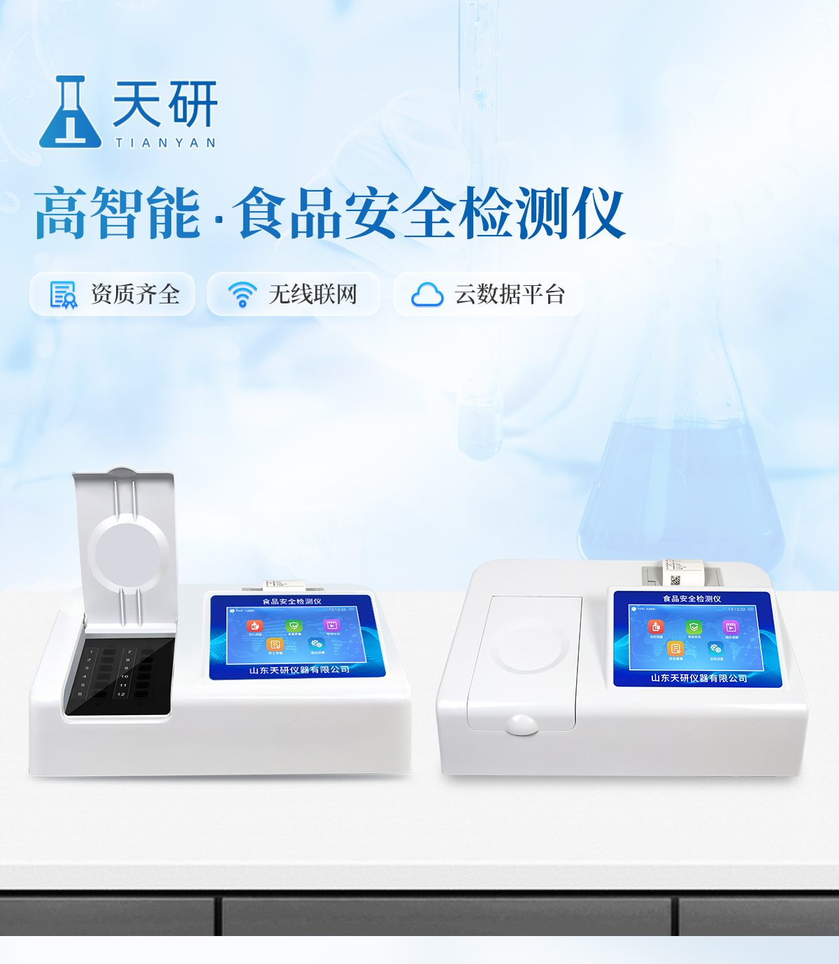 多功能食品安全檢測儀可快速檢測200多項目,包含非食用化學(xué)物質(zhì)、濫用食品添加劑、農(nóng)藥殘留、獸藥殘留、重金屬、病害肉、營養(yǎng)強化劑、抗生素類殘留、激素類殘留、真菌毒素類殘留、化學(xué)類殘留等現(xiàn)場的定性定量檢測。該多功能食品安全檢測儀為集成化食品安全快速檢測分析設(shè)備,廣泛應(yīng)用于市場監(jiān)管局、檢測中心、衛(wèi)生監(jiān)督部門、農(nóng)業(yè)部門、院校及各單位食堂、食品肉產(chǎn)品深加工企業(yè)、商超市場、司法部門、餐飲機構(gòu)、養(yǎng)殖場、屠宰場、檢驗檢疫部門等單位使用。