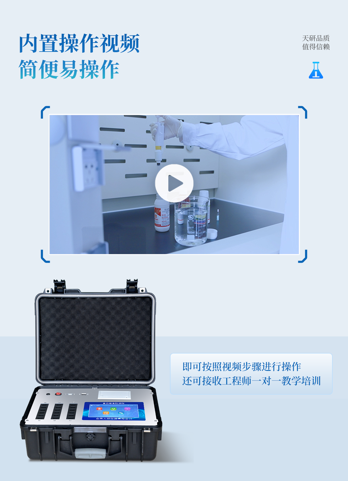 產(chǎn)品介紹: 多功能食品安全檢測儀可快速檢測200多項(xiàng)目,包含非食用化學(xué)物質(zhì)、濫用食品添加劑、農(nóng)藥殘留、獸藥殘留、重金屬、病害肉、營養(yǎng)強(qiáng)化劑、抗生素類殘留、激素類殘留、真菌毒素類殘留、化學(xué)類殘留等現(xiàn)場的定性定量檢測。該多功能食品安全檢測儀為集成化食品安全快速檢測分析設(shè)備,廣泛應(yīng)用于市場監(jiān)