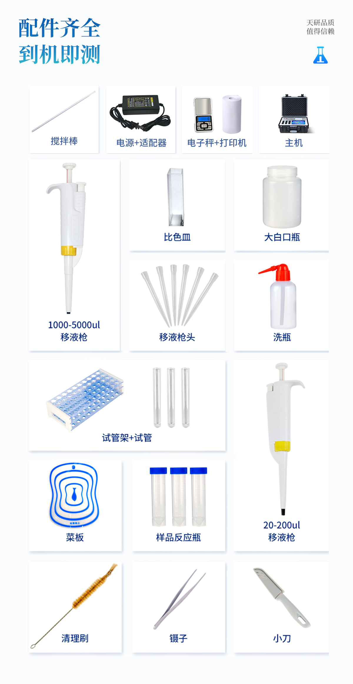 | 食品添加劑:二氧化硫、雙氧水、亞硝酸鹽、硝酸鹽、苯甲酸鈉、山梨酸、糖精鈉、甜蜜素、安賽蜜、硫酸鎂等 | 有毒有害物質(zhì):甲醛、吊白塊、硼砂、過氧化苯甲酰、溴酸鉀、羅丹明B、三聚氰胺、蘇丹紅等 | 果蔬中:有機(jī)磷和氨基甲酸酯類農(nóng)藥殘留; | 病害肉診斷:組胺、揮發(fā)性鹽基氮、肉制品酸價(jià)、水發(fā)產(chǎn)品中組胺 | 重金屬含量:鉛、鎘、鉻、汞、砷、錫、鎳、鋁等;食用油脂檢測:過氧化值、酸價(jià)、油脂丙二醛等。 | 瘦肉精激素類(獸藥):鹽酸克倫特羅、沙丁胺醇、萊克多巴胺、己烯雌酚、喹乙醇等 | 抗生素殘留類(獸藥):四環(huán)素類、硝基呋喃類、磺胺類、沙星類、喹諾酮類、慶大霉素、鏈霉素、阿莫西林、紅霉素等 | 水產(chǎn)品安全類:孔雀石綠、氯霉素、呋喃妥因代謝、呋喃西林代謝、呋喃它酮代謝、呋喃唑酮代謝等 | 真菌毒素類:食用油、糧食及飼料中黃曲霉毒素B1、奶中黃曲霉毒素M1、嘔吐毒素、玉米赤霉烯酮、赭曲霉毒素A等 | 水酒飲品分析:乳品及牛奶中蛋白質(zhì);酒中甲醇、乙醇、雜醇油;蜂蜜中果糖和葡萄糖、蔗糖、淀粉酶、酸度;水中氰化物、余氯,飲料中維C等 | 調(diào)味品成分:食醋的總酸、醬油的總酸、芝麻油純度、谷氨酸鈉、醬油氨基酸態(tài)氮、食鹽中亞鐵氰化鉀、食鹽中碘等 | 食用色素類:紅色色素(胭脂紅、莧菜紅、赤蘚紅、誘惑紅)、黃色色素(檸檬黃、日落黃)、藍(lán)色色素(亮藍(lán))等 | 動(dòng)物疫病類:豬藍(lán)耳病毒、豬瘟病毒、豬偽狂犬病毒、豬偽狂犬病毒gE蛋白、豬口蹄疫3ABC蛋白、豬口蹄疫病毒IgG、豬細(xì)小病毒、雞禽流感等 |