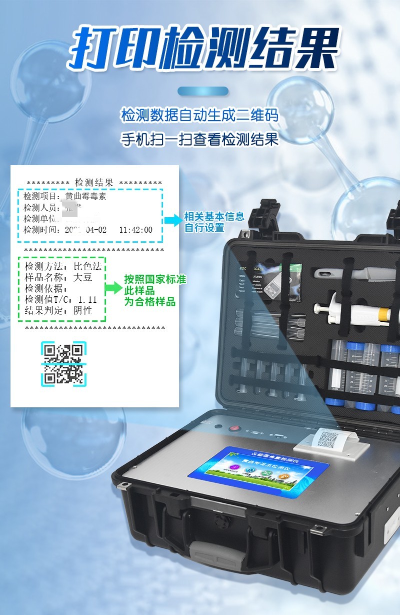 | 工作模式:安卓5.1系統(tǒng)模式 | 軟件支持:安卓軟件平臺 | ☆檢測項目:可檢測農(nóng)藥殘留、食品添加劑、色素、可現(xiàn)場快速檢測農(nóng)藥殘留、鹽酸克倫特羅、沙丁胺醇、萊克多巴胺、四環(huán)素類、硝基呋喃類、磺胺類、沙星類、氯霉素、孔雀石綠磺胺類,并且可以連接食品安全監(jiān)控系統(tǒng)。 | 測量原理:光電池測量反射衰減信號強度; | 測量速度:≤5s; | 儲存功能:儲存至少20000個結(jié)果數(shù)據(jù),支持自定義查詢; | 藍牙模塊:藍牙4.2 | 檢測精度:CV值小于1%(標(biāo)準(zhǔn)卡),批間差小于3%(標(biāo)準(zhǔn)卡); | 檢測輸出:支持色度檢測,CT比值檢測,T線檢測等多種擬合方式; | 內(nèi)置熱敏打印機 | ☆數(shù)據(jù)輸出:內(nèi)置WIFI,支持無線數(shù)據(jù)上傳,標(biāo)準(zhǔn)RS232串口,網(wǎng)絡(luò)接口和USB2.0接口; | ☆內(nèi)置食品安全信息系統(tǒng),一鍵數(shù)據(jù)上傳。 | 儀器外形尺寸:300*250*79mm | ☆操作系統(tǒng)配置:7吋液晶屏、4核處理器、1600萬像素 | 凈重:2.0kg。 |