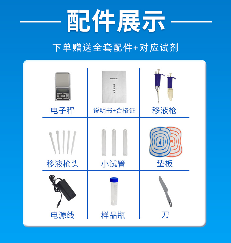 金標(biāo)度數(shù)儀快速定量檢測獸藥殘留、抗生素類殘留、激素類殘留、毒素類殘留,化學(xué)類殘留等幾十種項目并可根據(jù)用戶需要擴充新的檢測項目如農(nóng)藥殘留、食品添加劑、色素、可現(xiàn)場快速檢測農(nóng)藥殘留、鹽酸克倫特羅、沙丁胺醇、萊克多巴胺、四環(huán)素類、硝基呋喃類、磺胺類、沙星類、氯霉素、孔雀石綠磺胺類、豬藍耳病毒、豬瘟病毒、黃曲霉毒素B1、豬偽狂犬病毒、豬偽狂犬病毒gE蛋白、豬口蹄疫3ABC蛋白、豬口蹄疫病毒IgG、豬細小病毒、雞禽流感等定性和定量快速檢測等、并且可以連接食品安全監(jiān)控系統(tǒng)。