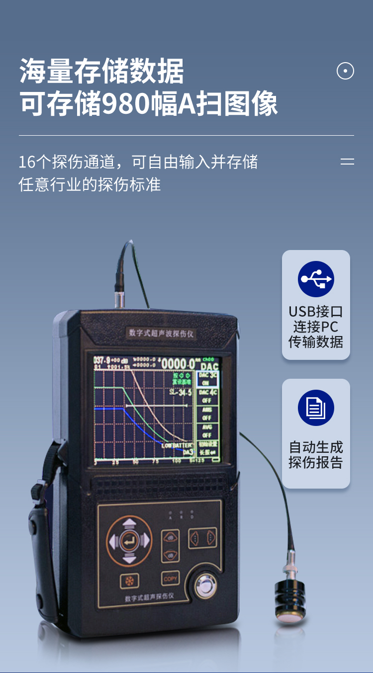數(shù)字超聲波探傷儀能夠便捷、準(zhǔn)確地進(jìn)行工件內(nèi)部多種缺陷如裂紋、焊縫、氣孔、砂眼、夾雜、折疊等的檢測、定位、評估及診斷,廣泛應(yīng)用于電力、石化、鍋爐壓力容器、鋼結(jié)構(gòu)、航空航天、鐵路交通、汽車、機械等領(lǐng)域。它是無損檢測行業(yè)的儀器。