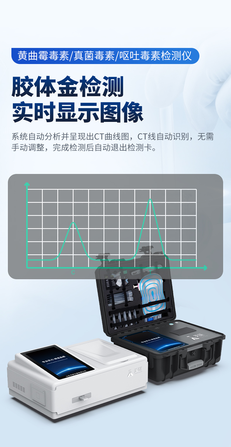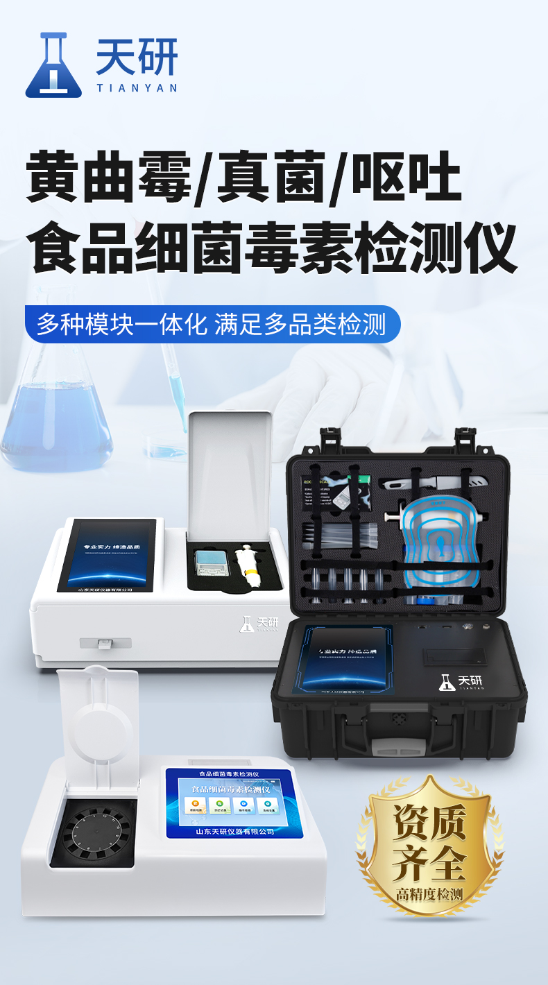 產(chǎn)品用途: 山東天研儀器有限公司生產(chǎn)的真菌毒素檢測儀應用競爭抑制免疫層析的技術原理,通過就是通過待檢測物與抗體結合的方法,分析待檢樣品中真菌毒素殘留??煽焖贆z測糧食、飼料、谷物、食用油、調味品中如玉米、大米、小麥、大麥、糙米、麩皮、稻谷、豆粕、米糠、飼料中的黃曲霉毒素B1、M1、總量,玉