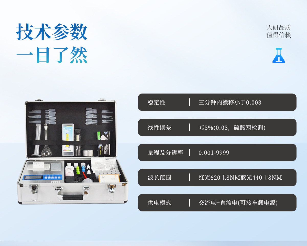 特點: 《機箱/藥劑一體式鋁合金機箱》專業(yè)設計,便于攜帶、堅固耐用,配套成套附件及成品藥劑 微電腦控制,數(shù)字化線路、程序化設計,液晶顯示,交直流兩用,可野外流動測試。 分