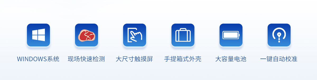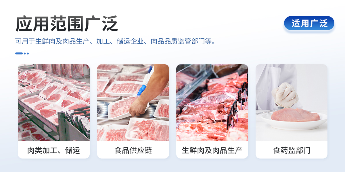 可用于檢測生鮮肉的蛋白質(zhì)、脂肪、水分、pH、TVC、TVB-N、新鮮度、L*、A*、B*等品質(zhì)參數(shù)。配備手提箱式防水減震外殼、大尺寸觸控屏幕并內(nèi)置大容量電池,可一鍵自動校準,是一款適合移動作業(yè)場景的高精度生鮮肉品質(zhì)檢測儀,其可用于生鮮肉及肉品生產(chǎn)、加工、儲運企業(yè)、肉品品質(zhì)監(jiān)管部門等。