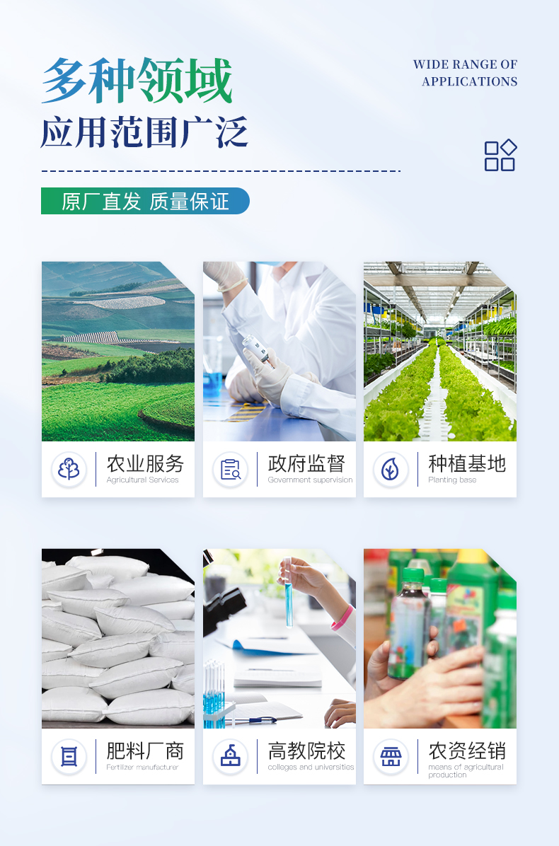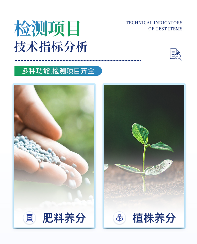 | 肥料養(yǎng)分:● 單質(zhì)化肥中的氮、磷、鉀; ● 復(fù)(混)合肥及尿素中的銨態(tài)氮、硝態(tài)氮、磷、鉀、縮二脲; ● 有機(jī)肥(葉面肥)中速效氮、速效磷、速效鉀、全氮、全磷、全鉀、有機(jī)質(zhì),各種腐植酸等??蓴U(kuò)展檢測鈣、鎂、硫、鐵、錳、硼、鋅、銅、氯、硅、鉬等微量元素以及各種重金屬(鉛、鉻、鎘、汞、砷、鎳、鋁、氟、鈦、硒)。 |