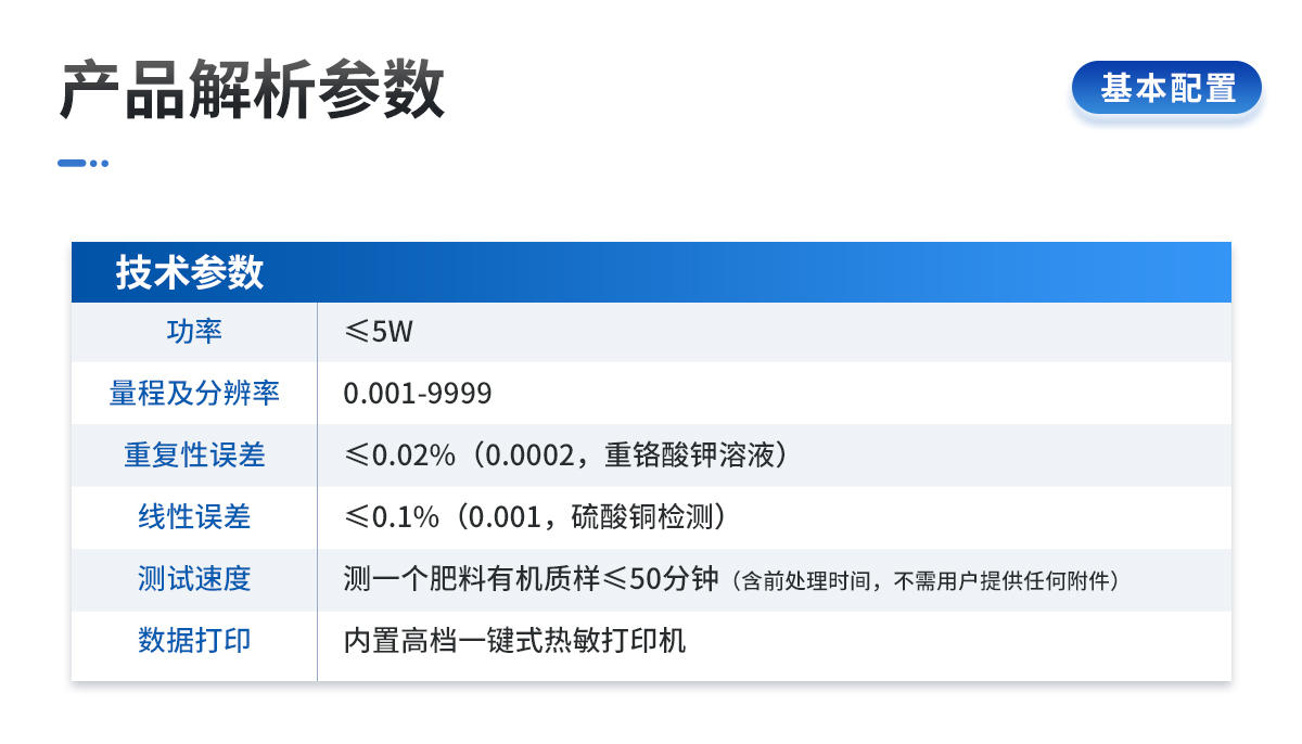 | 可檢測(cè)化肥、有機(jī)肥(含葉面肥、水溶肥、噴施肥等)、植株中的有機(jī)質(zhì)、腐殖酸等。 | 安卓智能操作系統(tǒng),采用更加**和人性化操作,儀器標(biāo)配wifi聯(lián)網(wǎng)上傳、4G聯(lián)網(wǎng)傳輸、GPRS無線遠(yuǎn)傳,快速上傳數(shù)據(jù)。 | 采用精密旋轉(zhuǎn)比色池設(shè)計(jì),光源一致性更加**保證檢測(cè)精度。一次性可快速檢測(cè)12個(gè)樣品,極大提升檢測(cè)效率,降低檢測(cè)成本。 | 儀器配有數(shù)據(jù)接收平臺(tái),無需數(shù)據(jù)線,數(shù)據(jù)可直接局域網(wǎng)和互聯(lián)網(wǎng)無線上傳,方便進(jìn)行數(shù)據(jù)管理和數(shù)據(jù)長(zhǎng)期分析。 | 儀器內(nèi)置新一代高速熱敏打印機(jī),檢測(cè)完成可自動(dòng)打印檢測(cè)報(bào)告和二維碼。 | 高靈敏7寸電容觸摸屏,高清晰高交互顯示,大程度降低傳統(tǒng)儀器的繁瑣操作和失誤。 | 每個(gè)通道均配置四波長(zhǎng)冷光源,所有光源實(shí)現(xiàn)恒流穩(wěn)壓,保證波長(zhǎng)穩(wěn)定。 硅半導(dǎo)體作為信號(hào)接收系統(tǒng),壽命長(zhǎng)達(dá)10萬小時(shí)級(jí)別。重現(xiàn)性好,準(zhǔn)確度高。 |