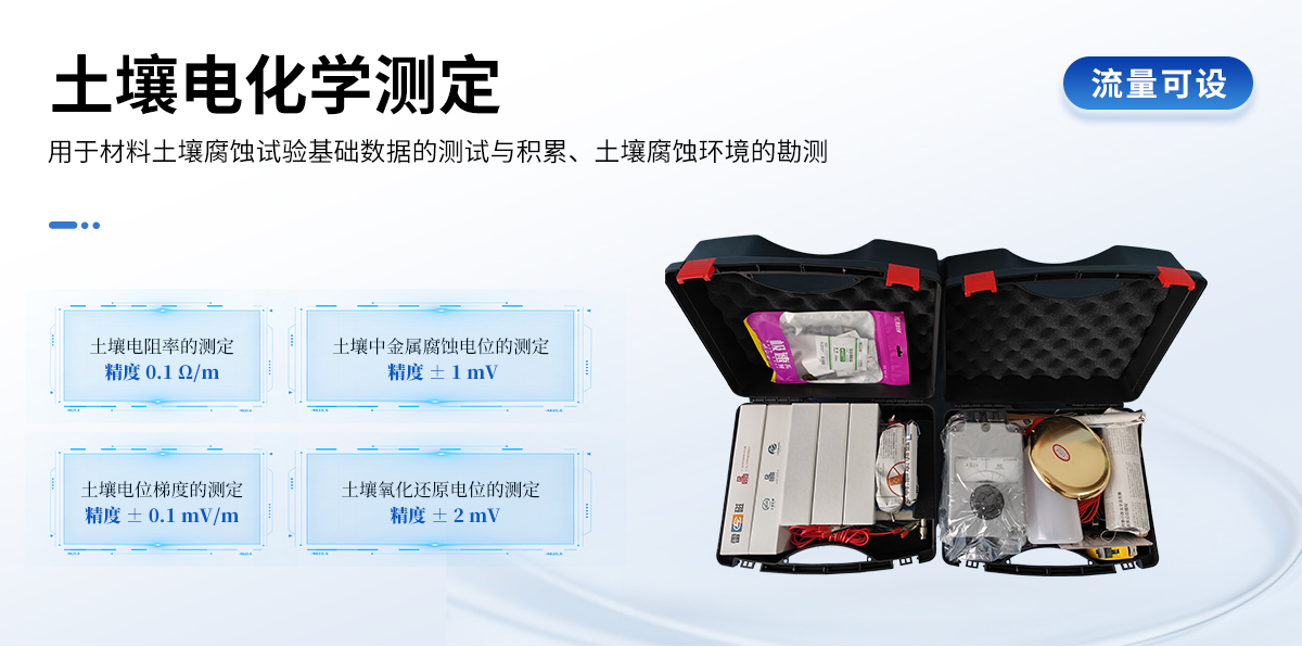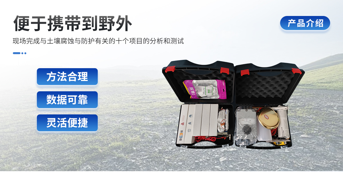 現(xiàn)場(chǎng)土壤腐蝕性綜合評(píng)價(jià)的便攜式解決方案,便于攜帶到野外,現(xiàn)場(chǎng)完成與土壤腐蝕與防護(hù),方法合理,數(shù)據(jù)可靠,靈活便捷。